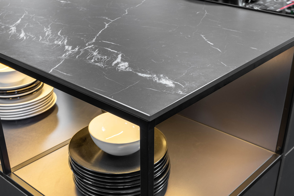 Керамические поверхности очень устойчивы к высоким температурам. Это и не удивительно, ведь при производстве керамических плит они, также как и фарфор, проходят процесс обжига при очень высокой (более 1000 градусов) температуре. Не бойтесь испортить вашу столешницу из керамики, поставив на ее поверхность горячую посуду.